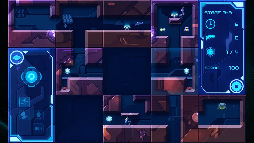 Guiding your humanoid character to safety is not easy, and to create safe passage through the abandoned orbital station, cunning strategy and quick reflexes is required. In order to overcome enemies and obstacles, and to reach the end of each level, you can jump, shoot and manipulate the world.